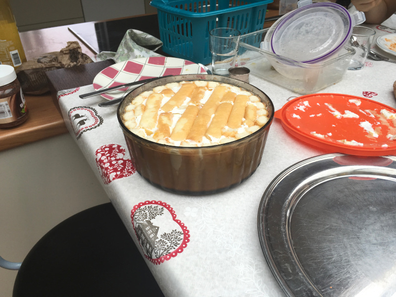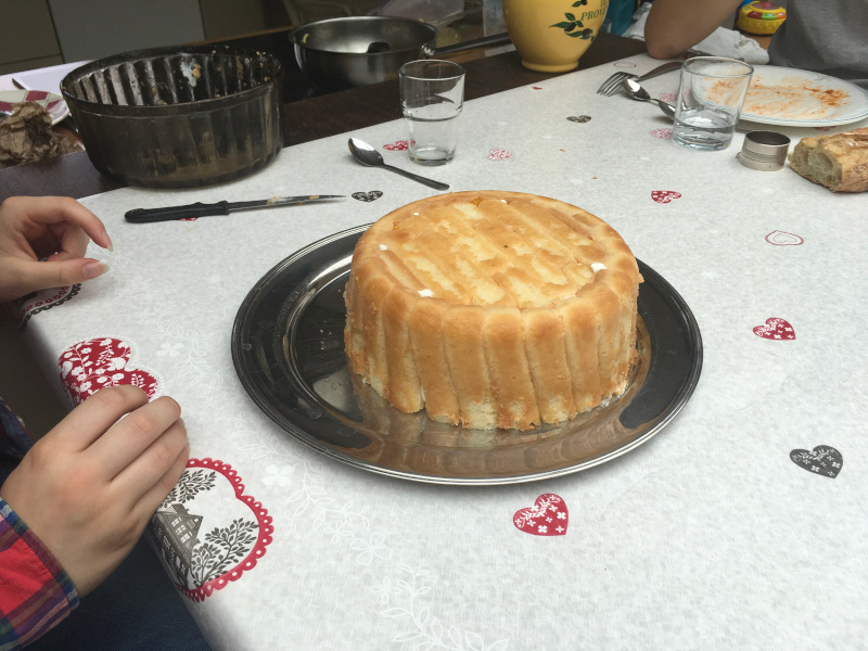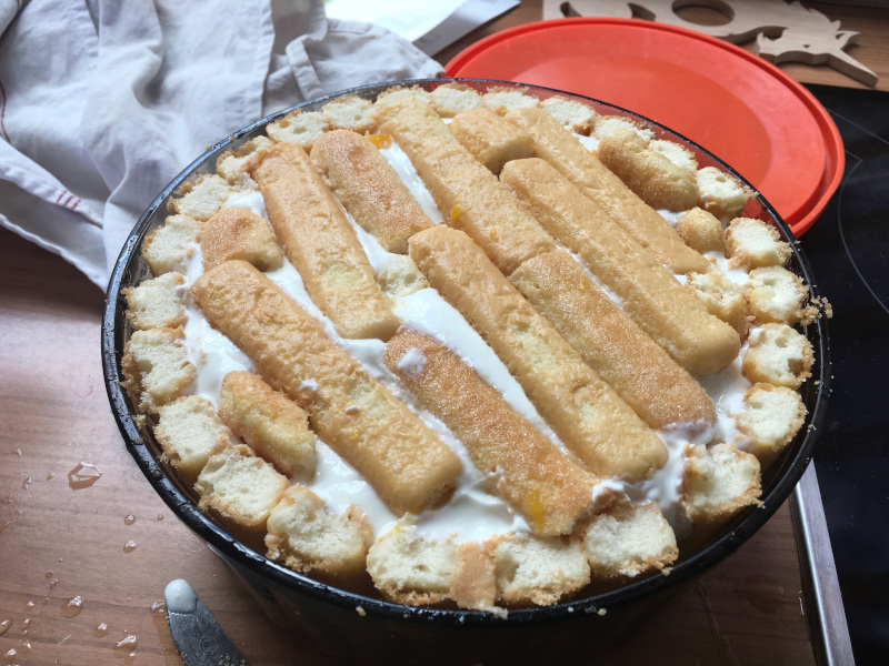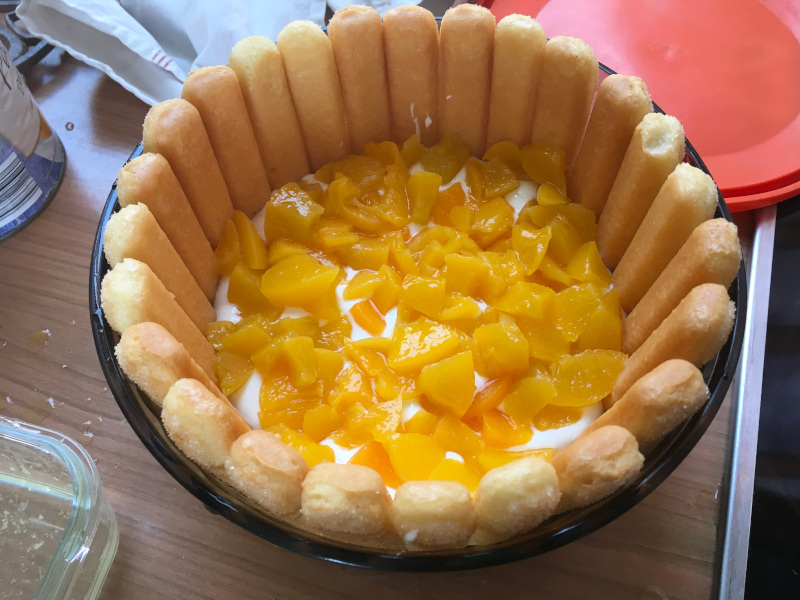 Romane à la manœuvre : il faut de la crème, des pêches, des boudoirs et le bon plat ;-)
